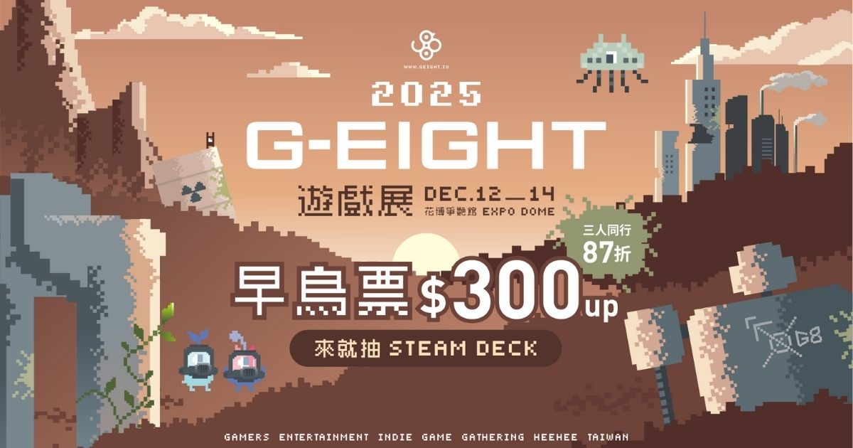 - 單日入場券將依照訂單順序發送兌票邀請碼至您的訂購信箱,信件主旨為:[KKTIX]活動 「2025 G-EIGHT 遊戲展」寄來邀請碼,請留意信箱收件,若無收到信件請同步檢查『垃圾郵件匣』。